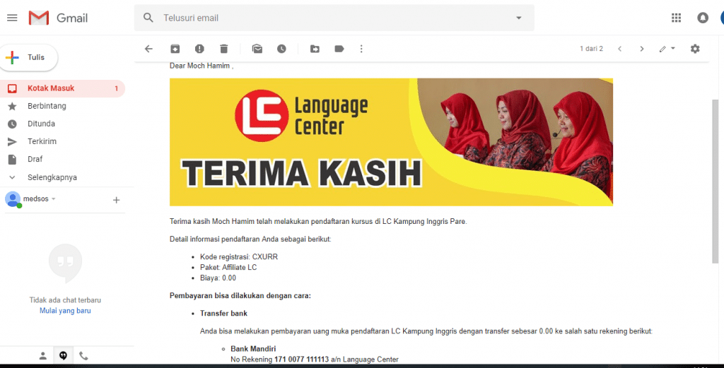 5. Silahkan cek email untuk melihat password dan biaya affiliate (khusus tidak menggunakan kode kupon). Jika Anda menggunakan kupon langsung saja ke langkah 7